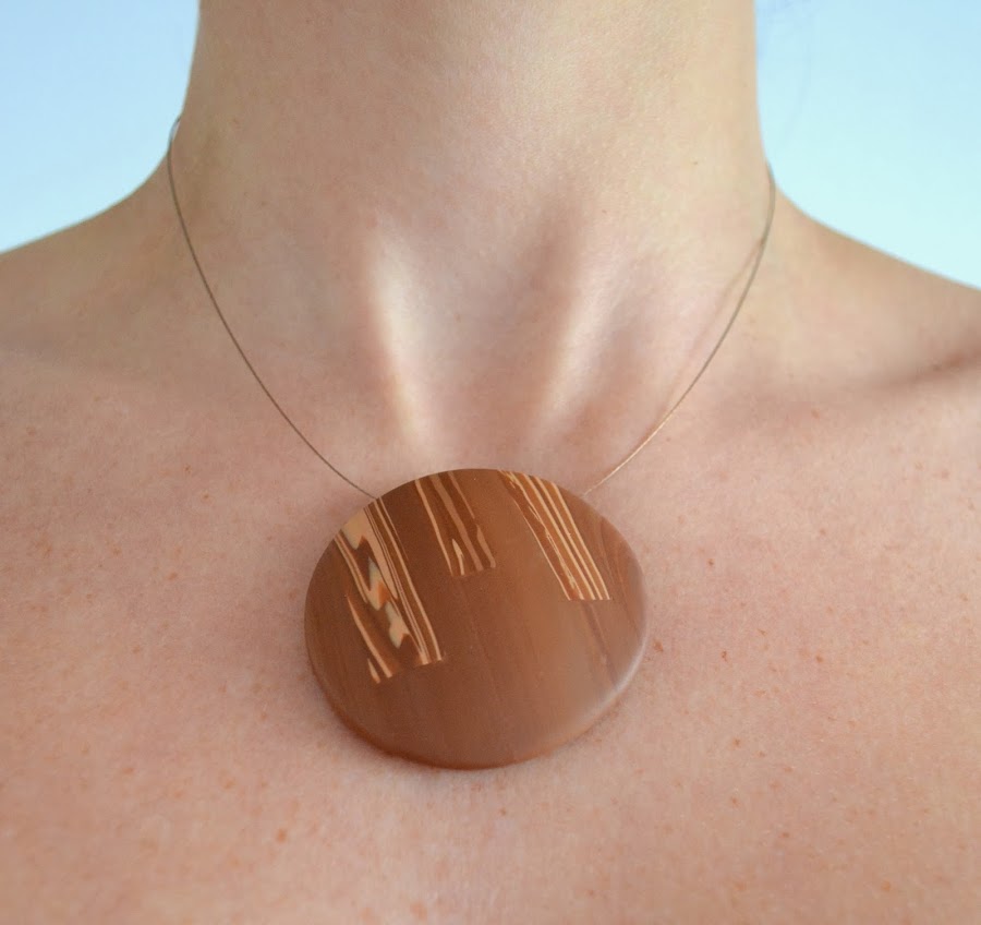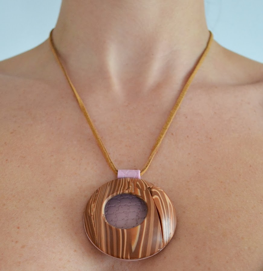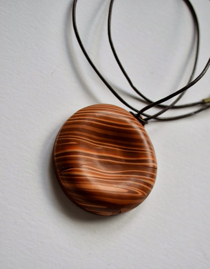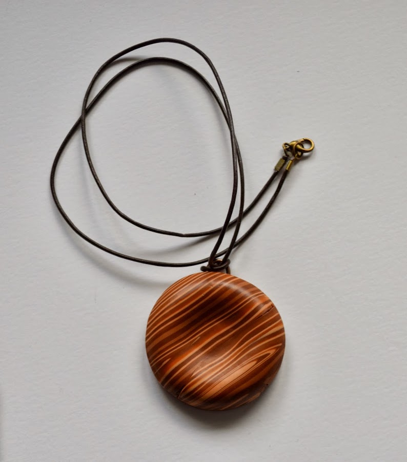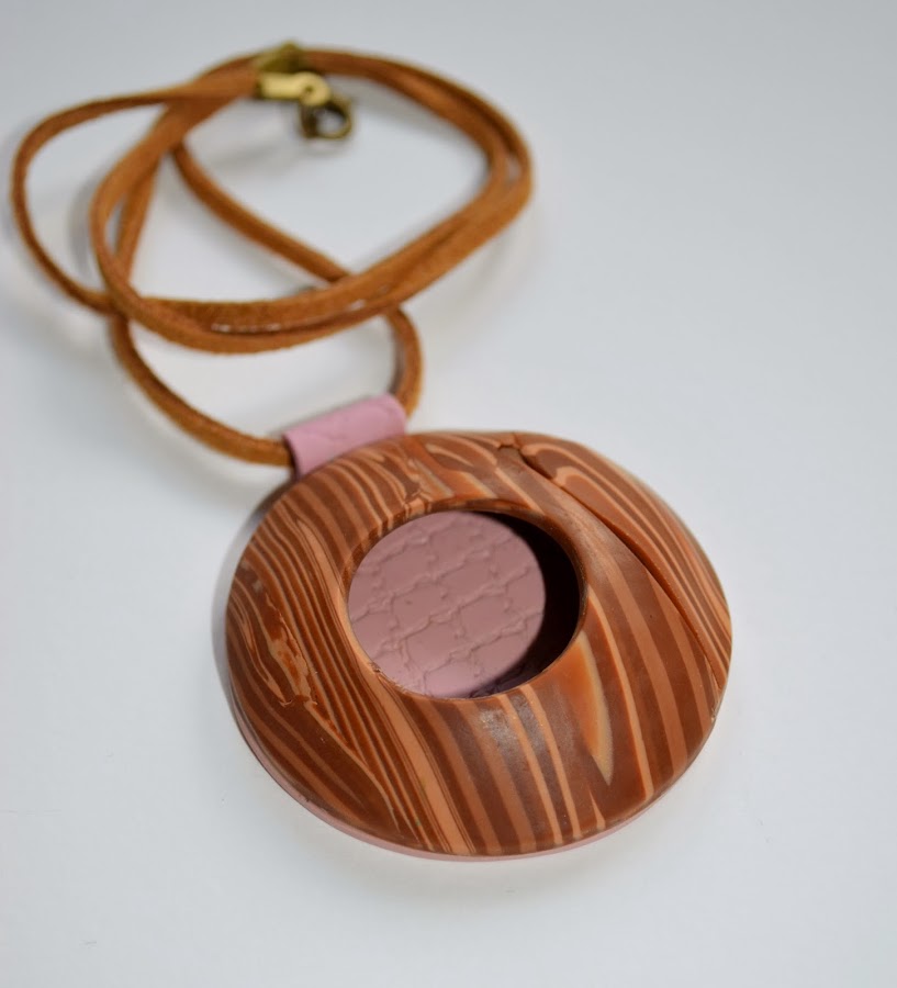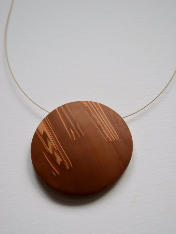 El viernes, en la sección Reconstrucciones, compartí esta pieza hecha con una murrina imitación madera, acompañada de un vídeo cortito para aprender a montar el colgante y para ir abriendo boca.