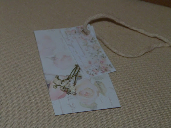 Por último, unas etiquetas de papel de scrap con un detalle de las mismas flores secas.