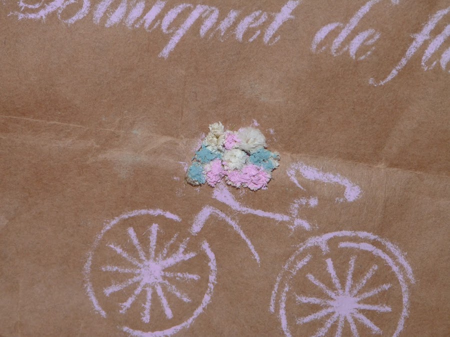 Con florecitas secas de la paniculata, hice un cesto de flores para la bici, alternan los dos tonos de los estarcidos y el blanco de las flores.