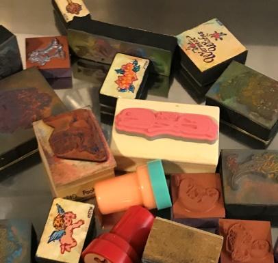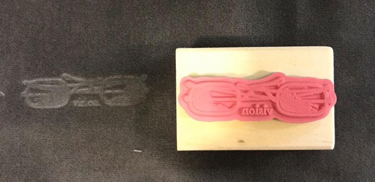 *Sellos, que preferentemente solamente tengan en relieve la figura que queremos estampar. Si poseen más plástico o goma rodeando la figura, es probable que esa superficie se marque en el terciopelo.