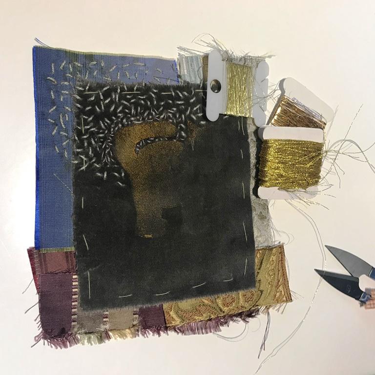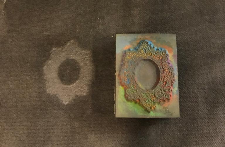 Aproveché la intervención de terciopelo con sellos que tenían pintura, e hice este trabajo de collage: