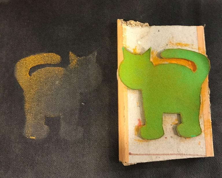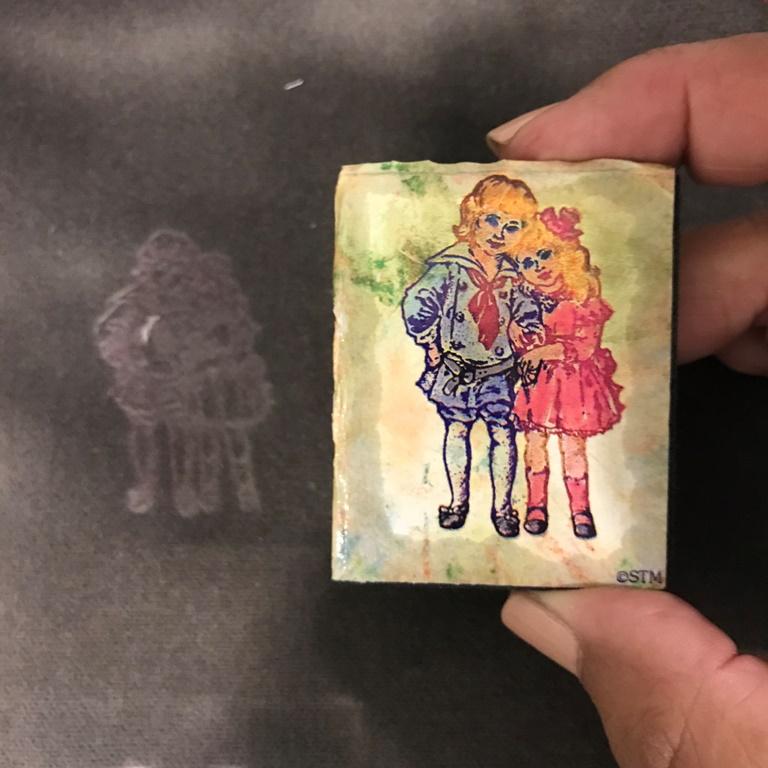 *Si los sellos poseen pintura de cualquier tipo porque ya fueron usados, podría transferirse a la tela y lograr interesantes variables de colores en las figuras.