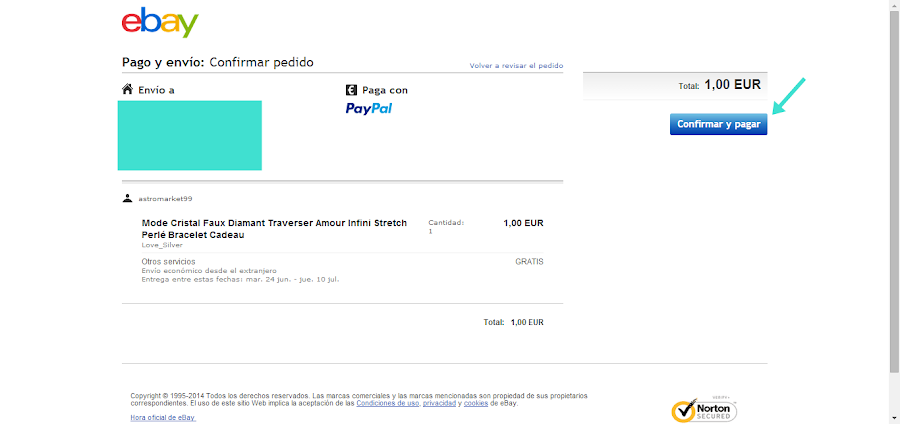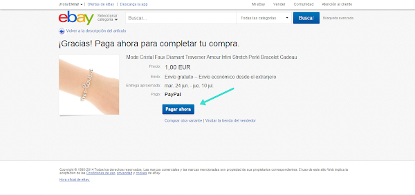 Y ahora viene el momento de pagar. Puedes hacerlo en ese momento o esperar unos días. Yo prefiero hacerlo al instante porque después se me puede olvidar. Si no querías aceptar la compra y le has dado al botón sin querer, este es el momento de no pagar y mandar un mensaje al vendedor. Es más lío, así que mejor ¡no te equivoques en el paso previo!.