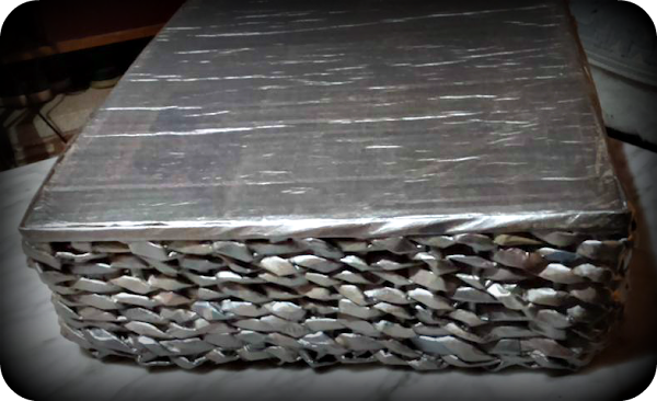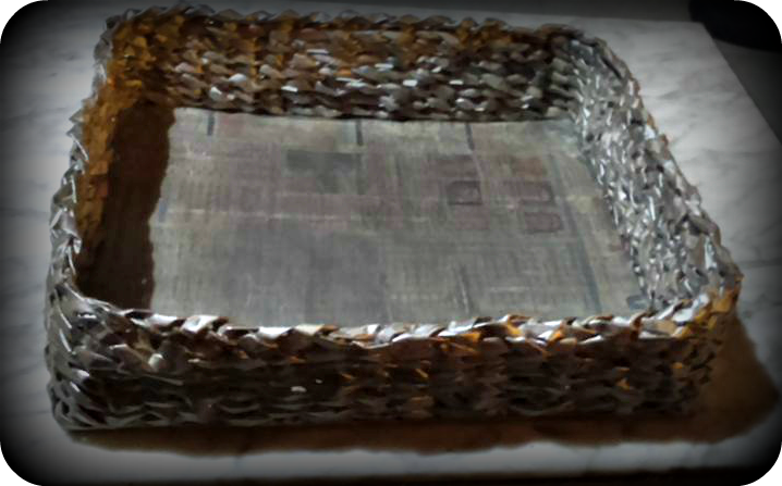 Es mi primer trabajo de cestería con papel de periódico , y este es el momento en el que necesitaba hacer algo nuevo , aprender una técnica nueva , así que me he decidido.