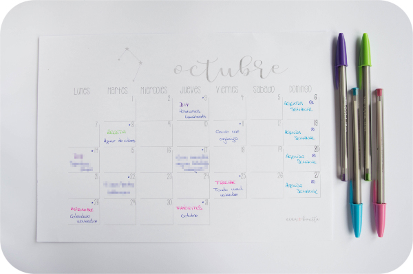 En este caso el calendario lo uso de manera digital, es decir, lo llevo en el móvil, pero la forma de estructurarlo es básicamente la misma que con la del blog.