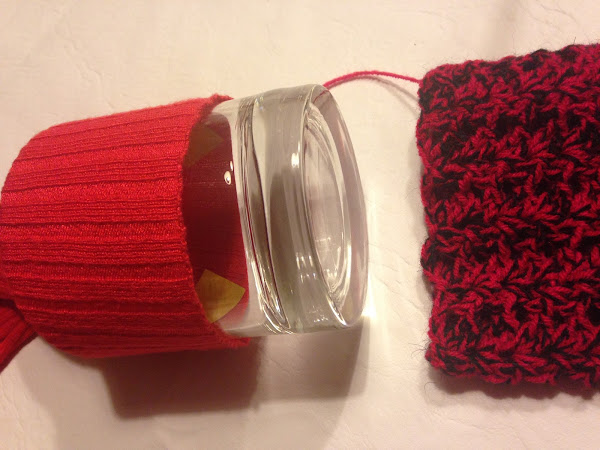 Una vez tejida la manga, para pegarla utilicé un vaso para que no se me achique al coserla