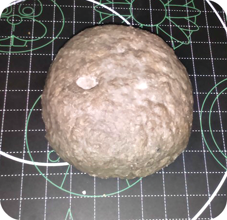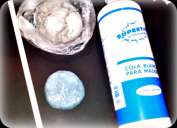 La pasta de papel necesita cola , está un poco seca , pero está bastante bien , le he echado muy poca , se amasa con insistencia para que que la cola quede bien incorporada.La piedra la veréis azul , porque la masilla llevaba colorante ...
