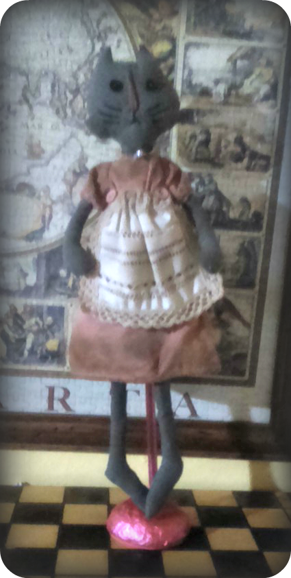 Así queda de chula mi gatita en su soporte , tendré que hacer alguno más para lucir mis otros bebés ahora que ya se como hacerlo.