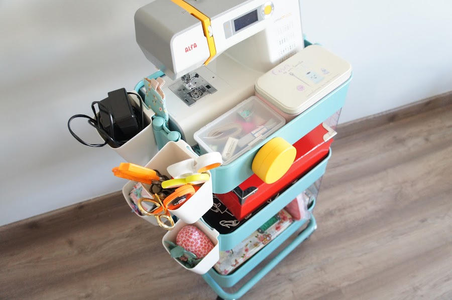 Yo soy nómada para el tema de la costura, no tengo un lugar dedicado a esto exclusivamente y voy rotando por donde mejor me viene. Tenía la máquina de coser por un sitio y el resto del material por otro. Ademas el sitio donde guardaba la maquina era poco accesible, con lo cual me daba una pereza enorme ponerme manos a la obra. Por otra parte, tenia el carrito ( puedes encontrarlo aquí ) totalmente inutilizado con cosas que no me valía para nada. Después de mucho visitar Pinterest en busca de inspiración, decidí ponerme manos a la obra y sacar el máximo partido a las posibilidades de orden que te ofrece este carrito.