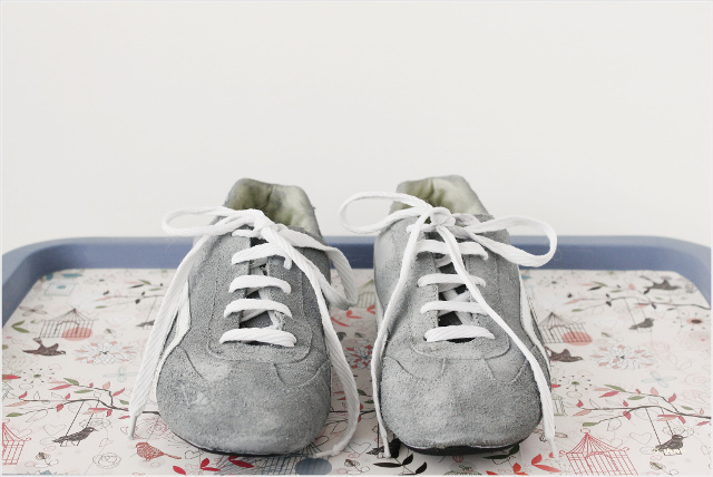 Partiendo de la base de que la chalk paint se pega a cualquier superficie, me dije "¿Qué tal irá en la piel de imitación de mis deportivas?" No tenía mucho que perder porque estaban hechas polvo, así que me lancé a probar.