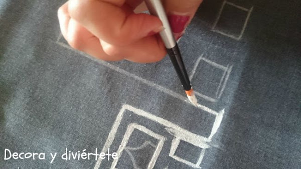 Una vez que te guste como te ha quedado el dibujo , tienes que poner una cartulina debajo de la tela , ya que la pintura puede traspasar la tela y manchar la parte de atrás de la falda .