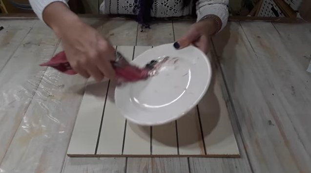 En la siguiente imagen podemos ver que en un platito comun, mezclamos un poco de cera para pasarle a los muebles con un poquitito de oleo, si ustedes no tiene oleo, pueden tonalizar la cera con algun acrilico.