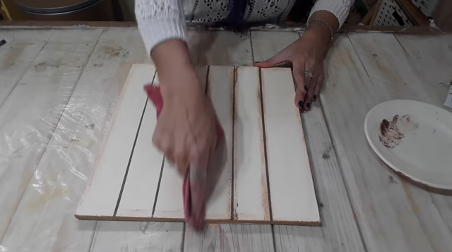 * Lo primero que debemos reciclar es una madera de fibrofacil, o la que tengas en casa. Pintemos con 2 manos de acrilico, pintura a la tiza, las pinturas que tu tengas en color manteca.