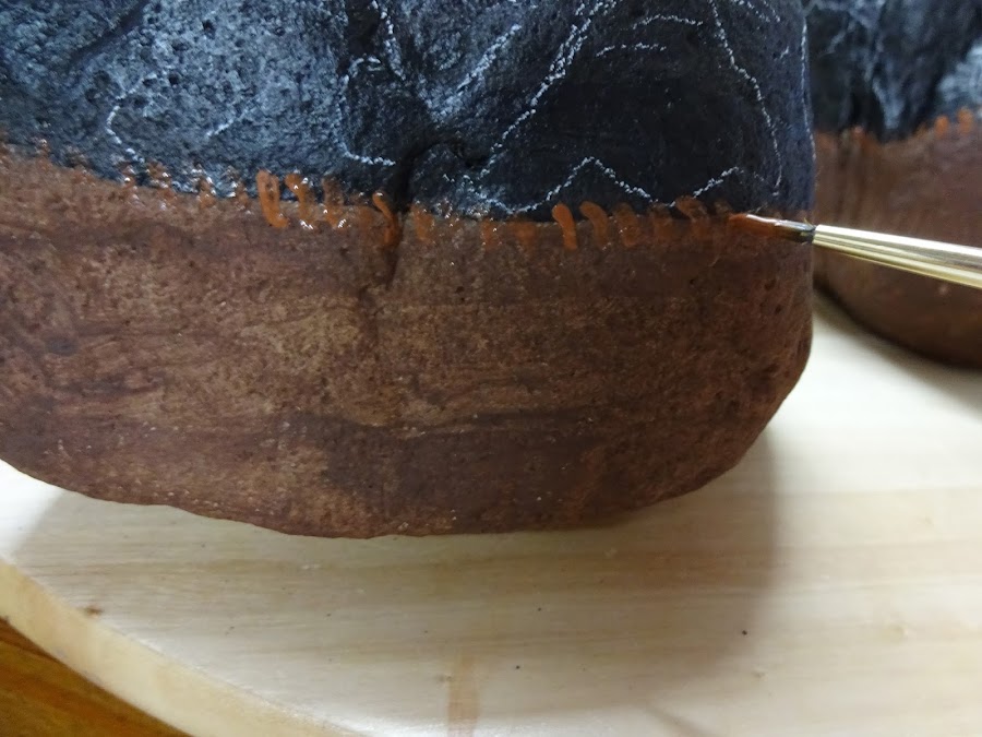 Y también aplicaremos sobras con el negro a lo largo de todo el cesto, yo he optado por hacer la sombra en el lado derecho de la línea marrón teja que habíamos pintado antes, con el fin de que se vea que la luz viene de la parte izquierda.