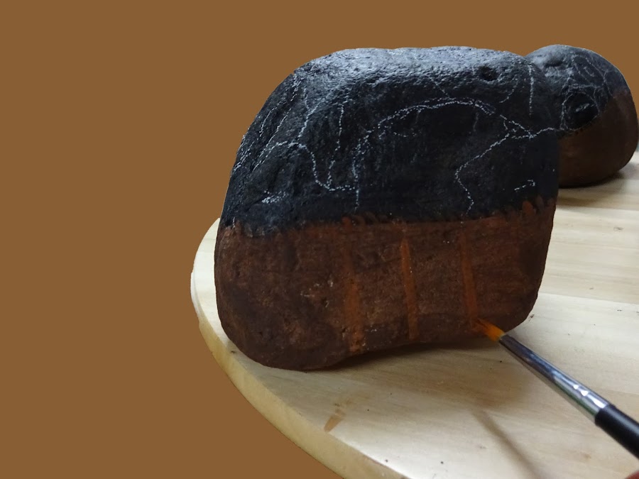 Se lavan las piedras con un cepillo, agua y jabón, con el fin de eliminar la suciedad que pueda tener y así que la pintura acrílica se adhiera mejor.