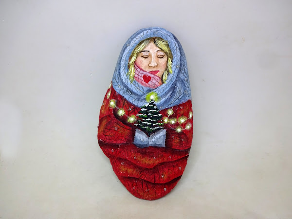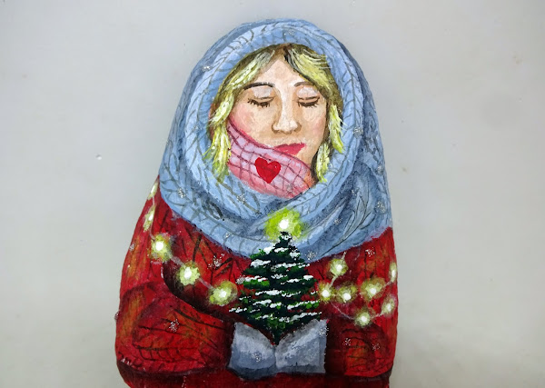 Si el color de la piedra es oscuro, te consejo que la pintes con fondo blanco, después haces el borrador de la chica sobre ella y listo. ¿Por qué pintamos una base blanca? Esa es una buena pregunta, pues simplemente porque los colores son translucidos, es decir, que no cubren de forma nítida como puede ser un blanco o un negro que son colores opacos. Ese es el motivo por el que pinto antes las luces y el arbolito de navidad en color blanco, tal y como explico en vídeo