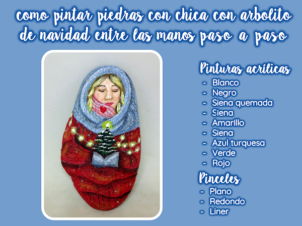 Los materiales que vas a necesitar para pintar piedras con chica con árbol de navidad entre las manos paso a paso, son los siguientes: