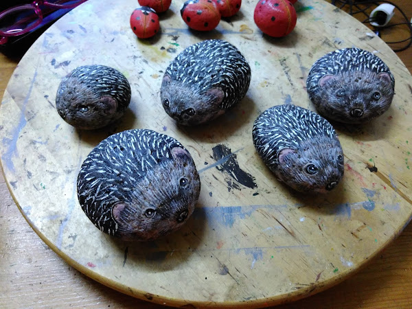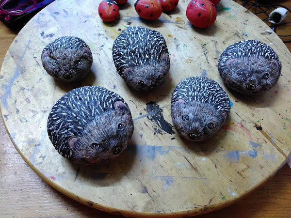 Aquí estoy de nuevo, esta vez he querido pintar piedras con pequeños erizos del bosque, esos pequeños animalitos que comen gusanos e insectos y que parece ser que están tan de moda últimamente.