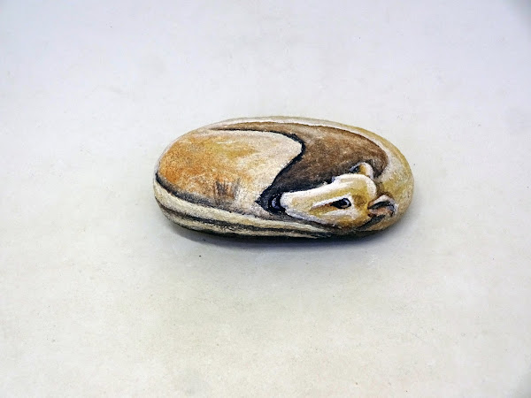 Para este paso a paso aconsejo que encuentres una piedra que sea ovalada y con volumen, es decir que no sea plana, de esta forma es más fácil pintar cualquier animal acurrucado, en este caso el galgo