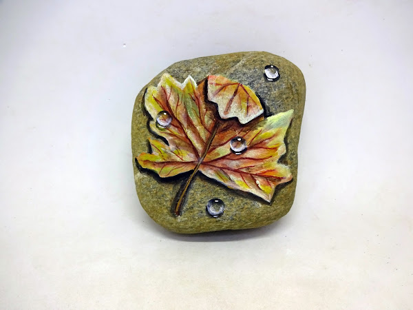 Hoy te traigo un paso a paso para que puedas pintar una hoja seca y gotas de agua sobre piedra, la piedra que aconsejo utilizar es una piedra plana, aunque la que he utilizado no sea así precisamente, en este momento no tenía otra