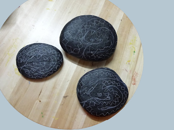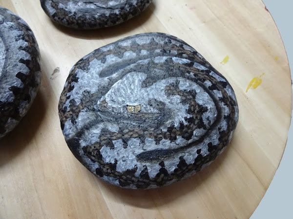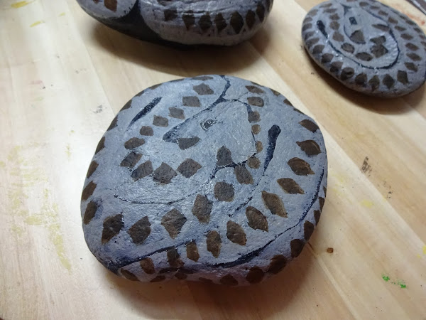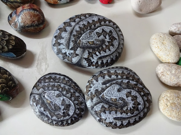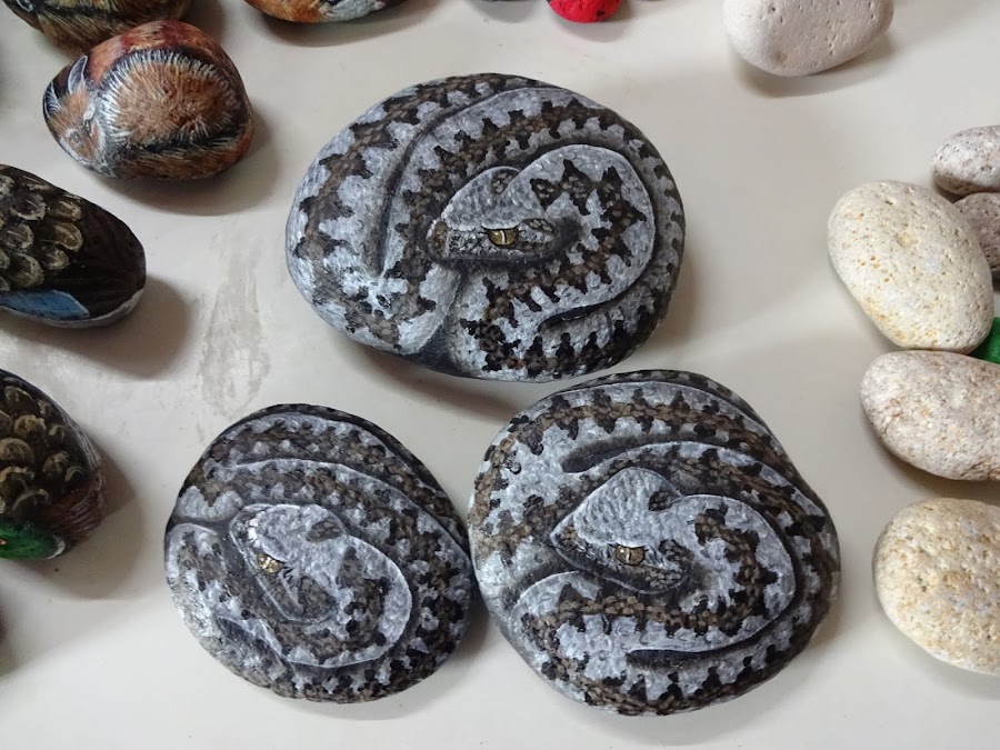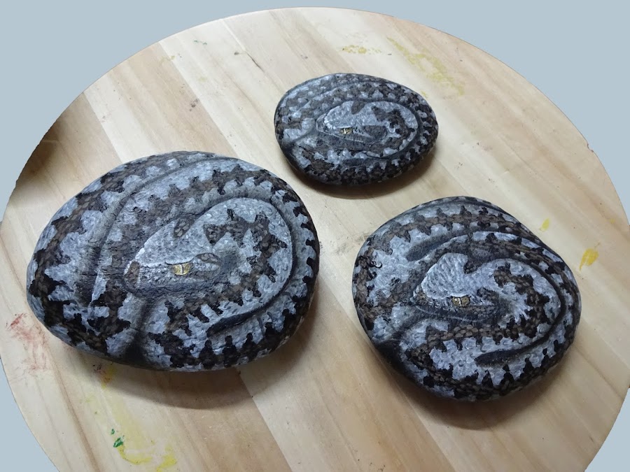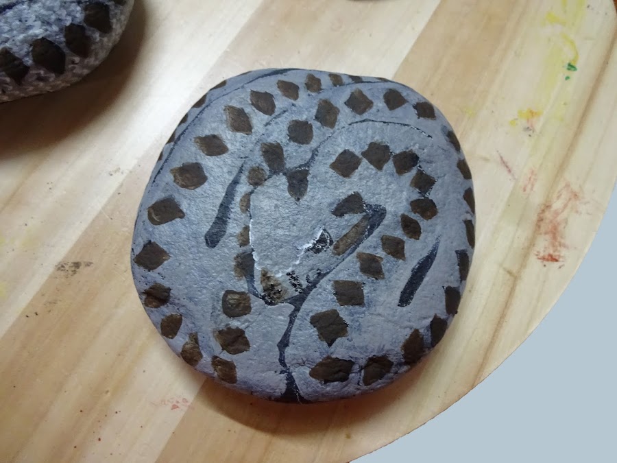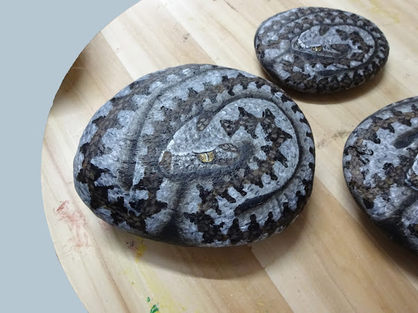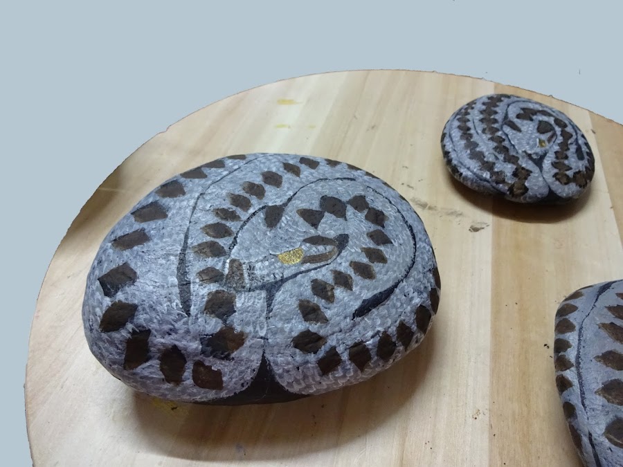 Escogemos una o unas piedras que vayan bien para lo que deseamos pintar, en este caso he escogido unas piedras bastante planas y redondeadas para poder pintar las serpientes, concretamente las Víboras.