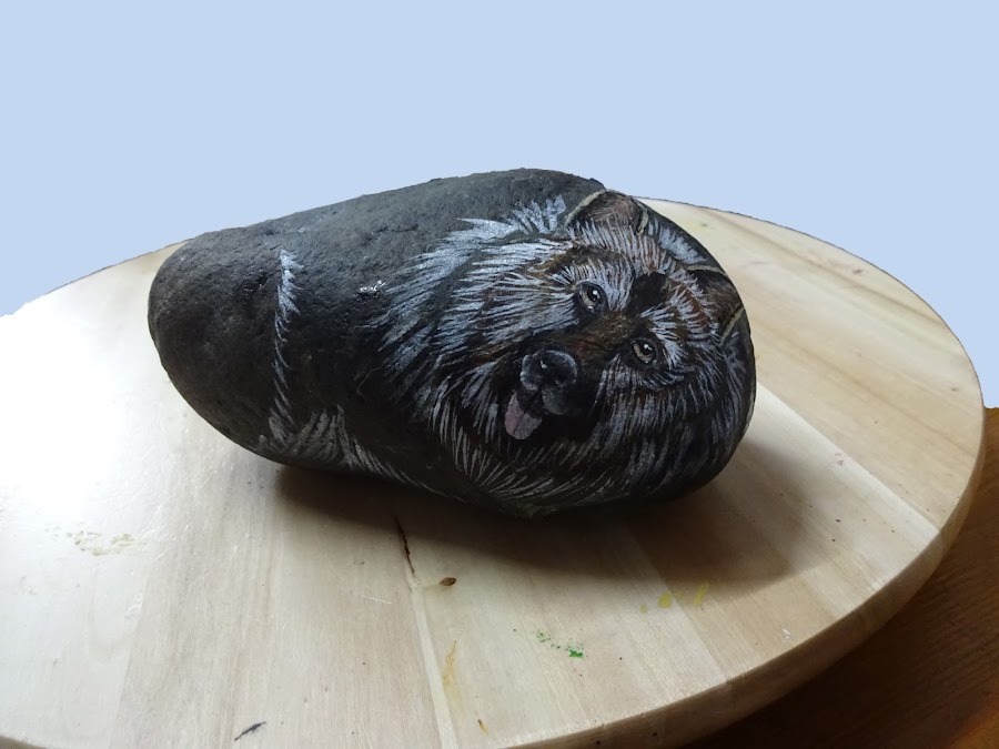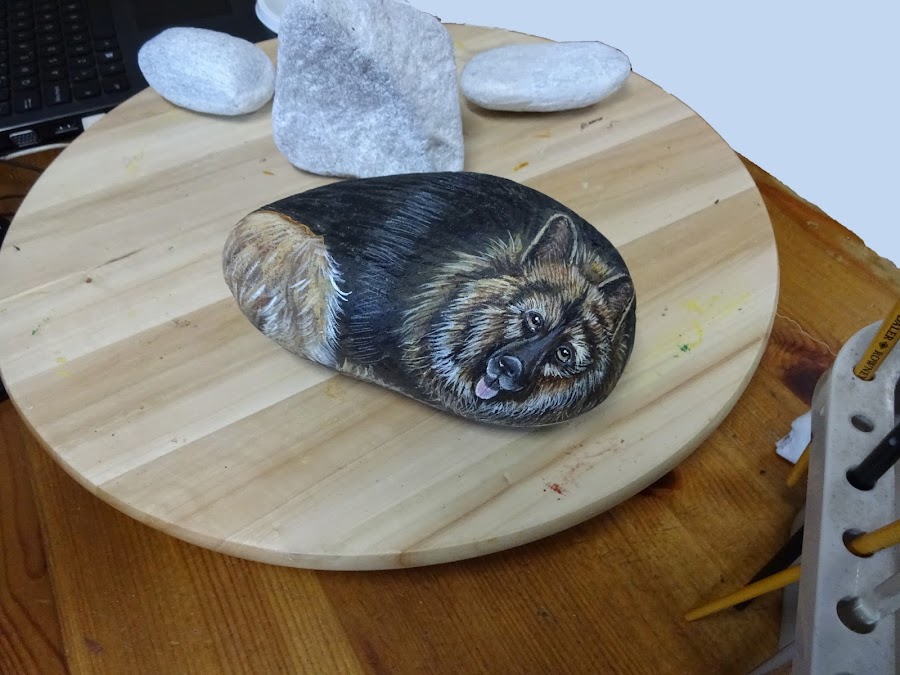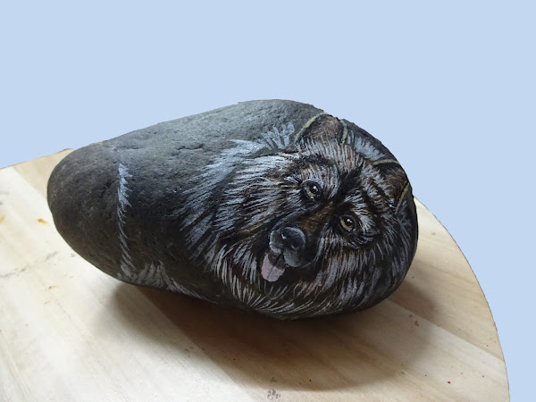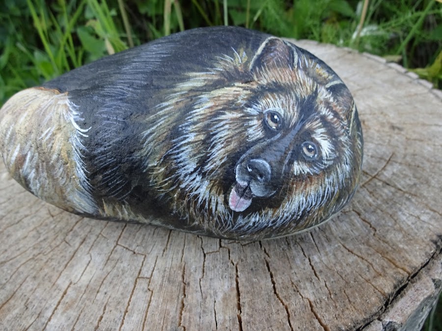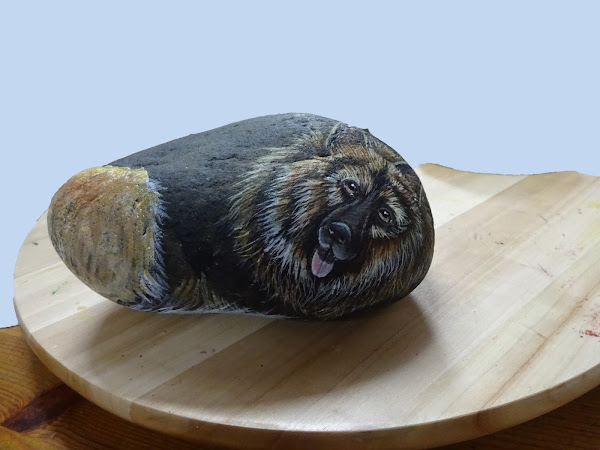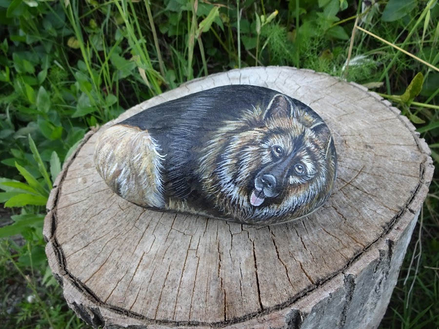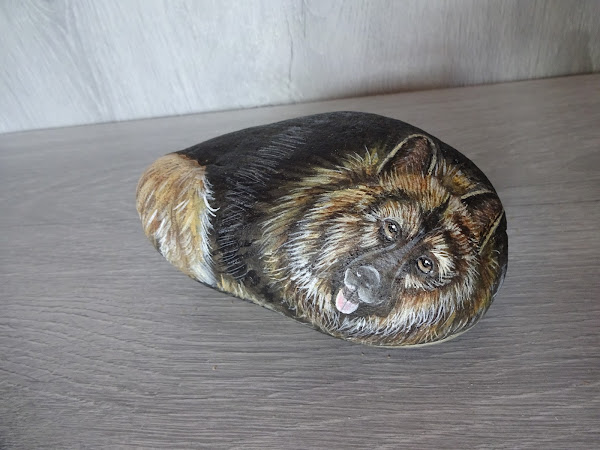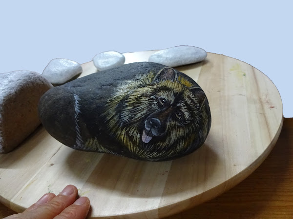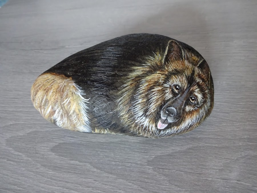 Aquí tenéis la piedra pintada con un pastor alemán, espero que os haya gustado.