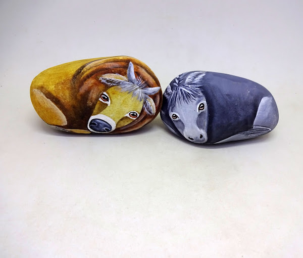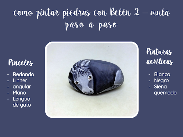 La mula es una de más piezas más sencillas que pintamos en piedras, no, no te asustes, sencilla por el hecho de que tiene muy pocos pasos y que hay poco que repasar, las otras piezas, es decir, José, María, el niño Jesús, y los reyes magos, suelen tener un poquito más de complicación porque se debe pintar los pliegues de los vestidos o túnicas, pintar caras y manos, etc., iremos paso a paso...