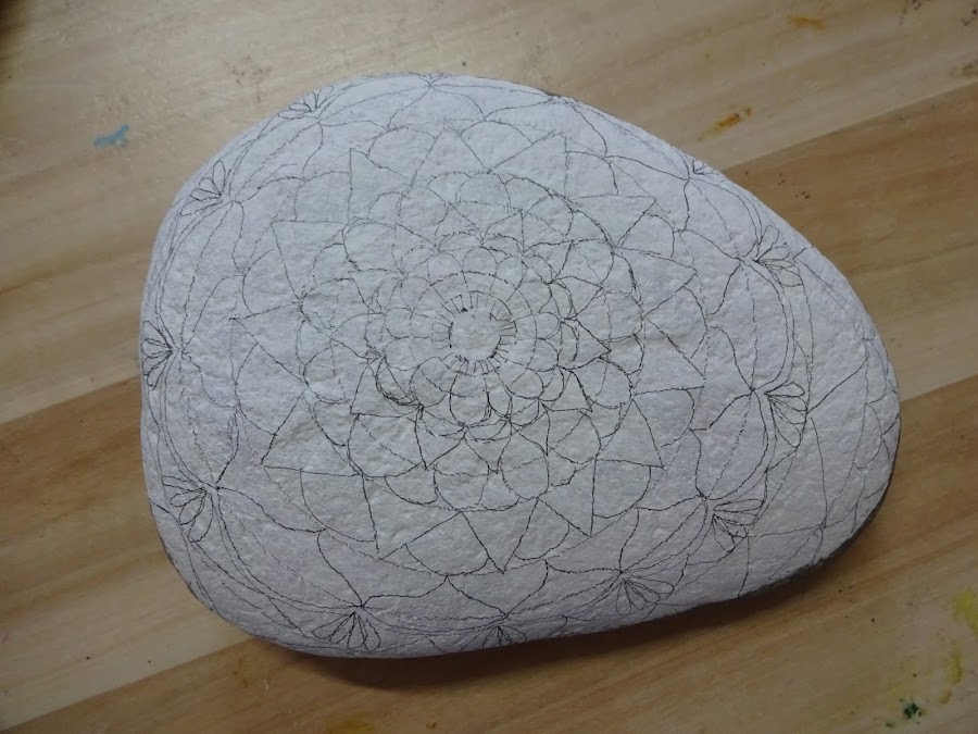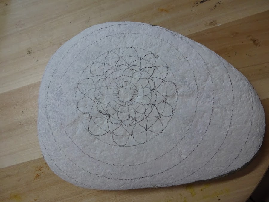 Después empezamos a dibujar el diseño que deseo plasmar en la piedra, me gustan las formas tipo pétalo, y a vosotros??
