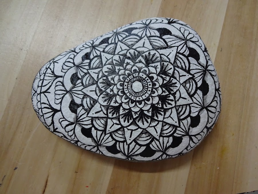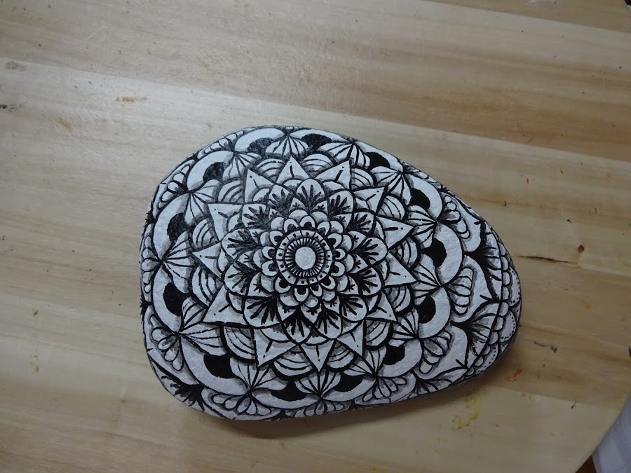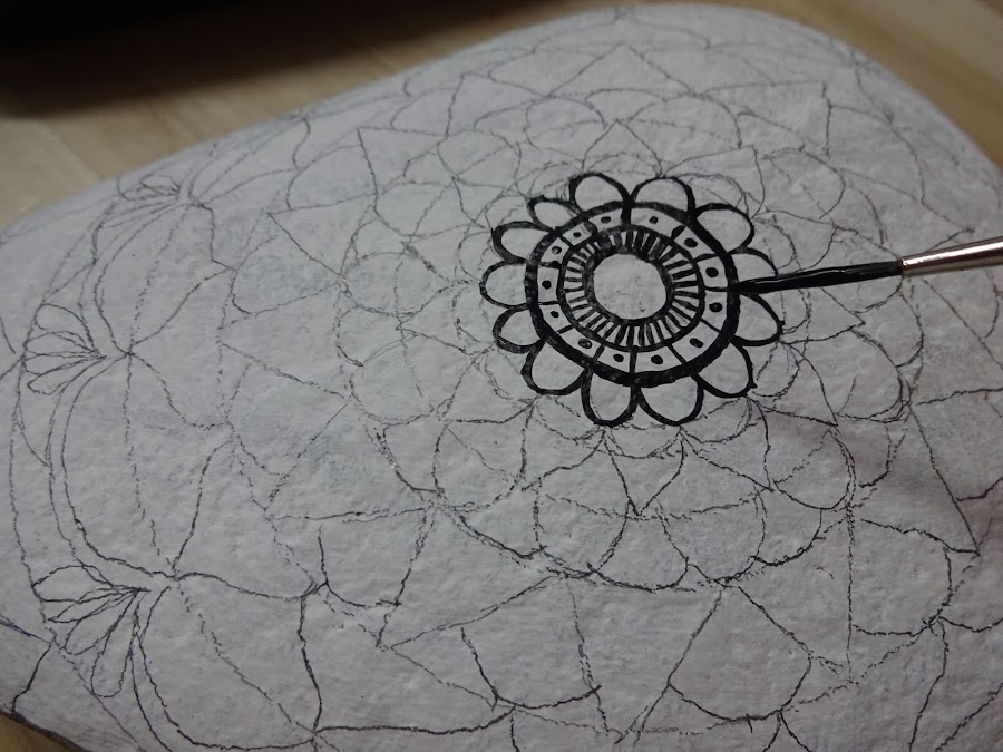 Suelo tener una idea preconcebida de cómo será el mandala, he dibujado alguno que otro en papel, pero nunca lo había hecho en piedra, prefiero pintar animales o personas. O si no os viene la inspiración, siempre podéis consultar en san google, en los diferentes medios que hay para tomar ideas, como puede ser Pinterest o Instagram.