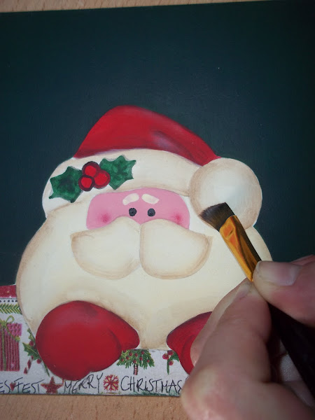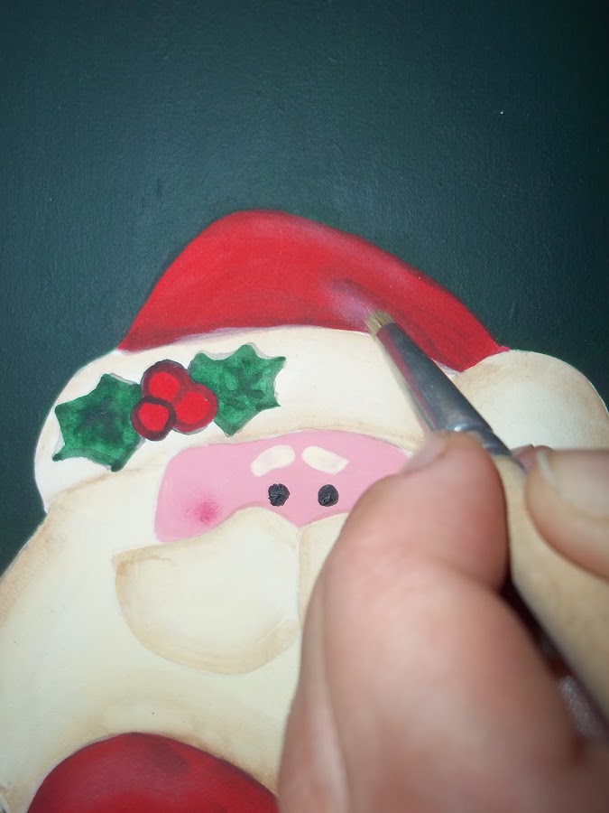Luego con pincel angular,sombreamos y damos color a la barba y al pompón ; y a su vez utilizamos el sombreado para dar profundidad en las manoplas y el el gorro.