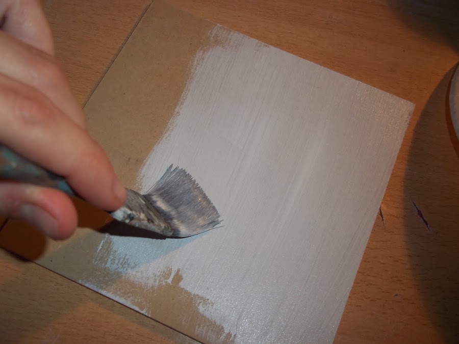 En primer lugar vamos a dar dos manos de base acrílica blanca,para que los colores que agreguemos luego resalten mas.