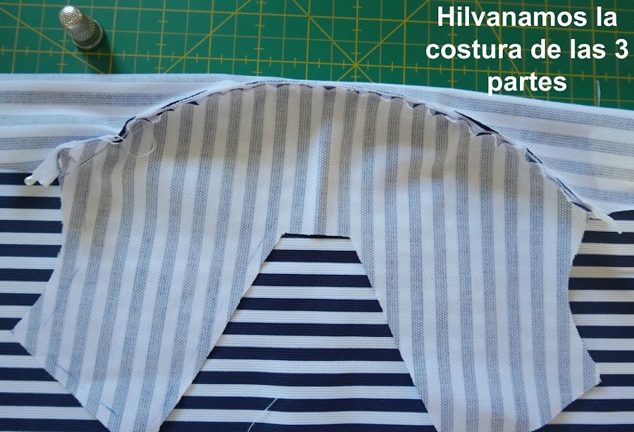 Sólo nos faltará cortar el tejido que nos sobra, si la costura de la pieza a la que lo vamos a unir tiene la costura de 1 cm.
