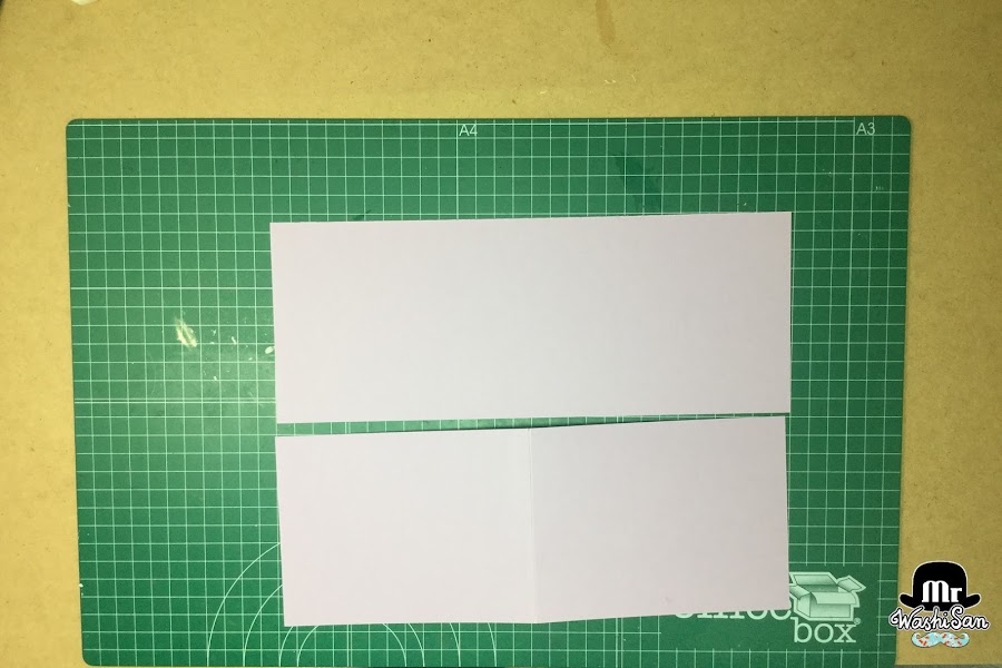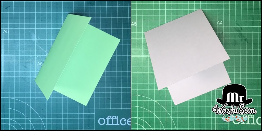 A partir de una cartulina DINA4 (21 x 29,7cm o 8"1/4 x 11"3/4) obtendremos dos bases de tamaño casi americano (5"1/2 x 4"1/8 o 13,9 x 10,5 cm) que difiere en solamente 3 mm de anchura respecto el tamaño AMERICANO (5"1/2 x 4"1/4 o 13,9 x 10,8 cm). Ya que al doblarla, lo 6mm se transforman en 3mm de diferencia.