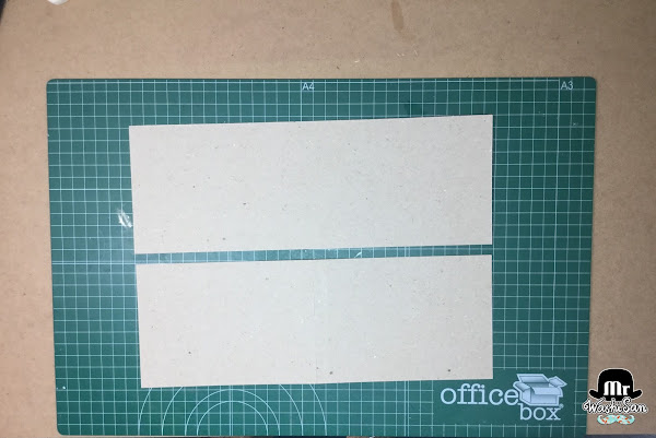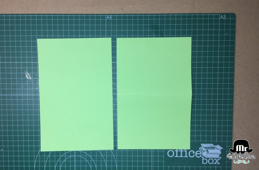 Cortamos el DINA4 por la mitad longitudinalmente (a 10,5cm o 4"1/8) obteniendo dos tiras alargadas.
