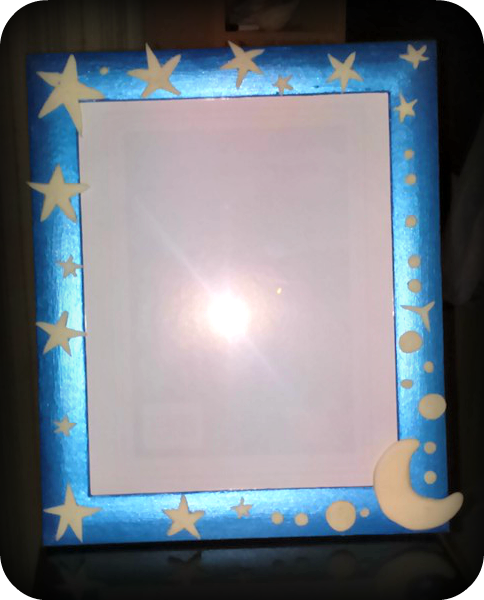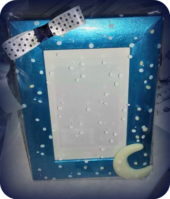 Mientras espero a que el marco esté completamente seco , preparo las decoraciones , en este caso son bien sencillas , una media luna y unas estrellas y unos puntitos , que serían estrellas que están muuuuyyy lejos en el firmamento.