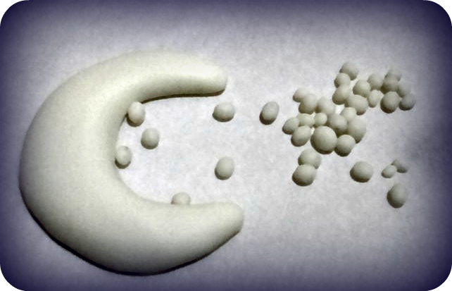 Las he hecho con Fimo , y cuando se apaga la luz alumbran en la oscuridad como si fuesen estrellas de verdad.