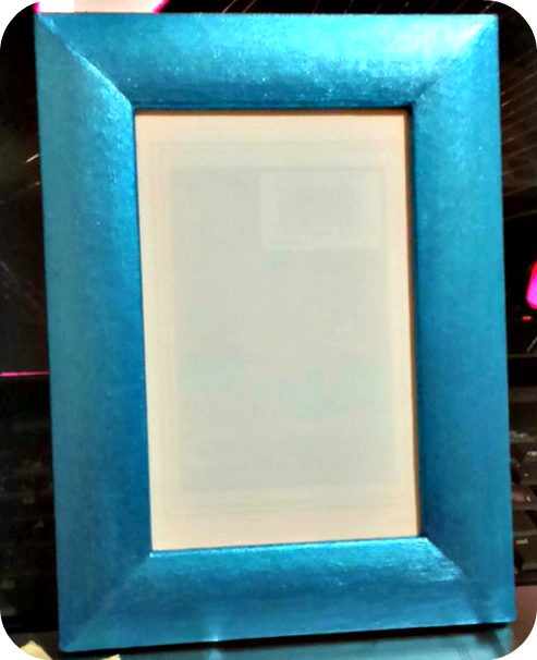 He comprado un marco de madera en un bazar chino , lo he lijado y dado dos manos de un acrílico metalizado que me encanta .