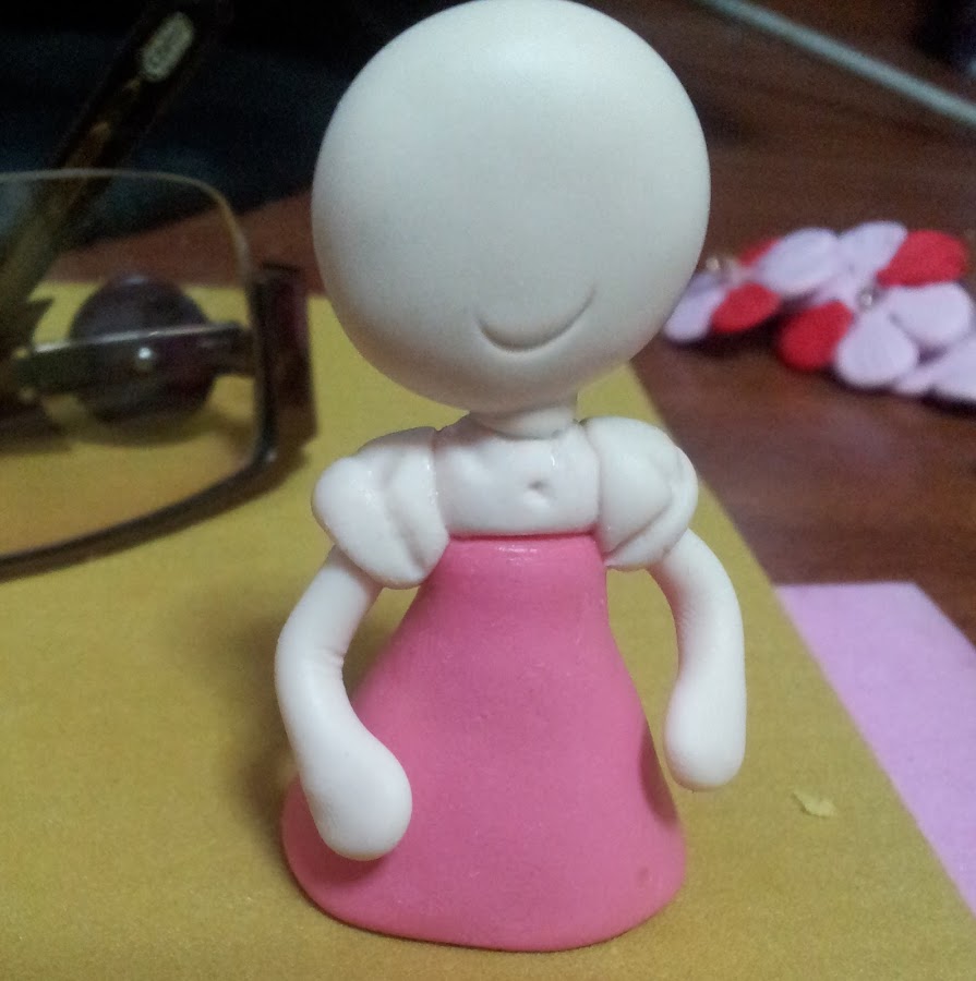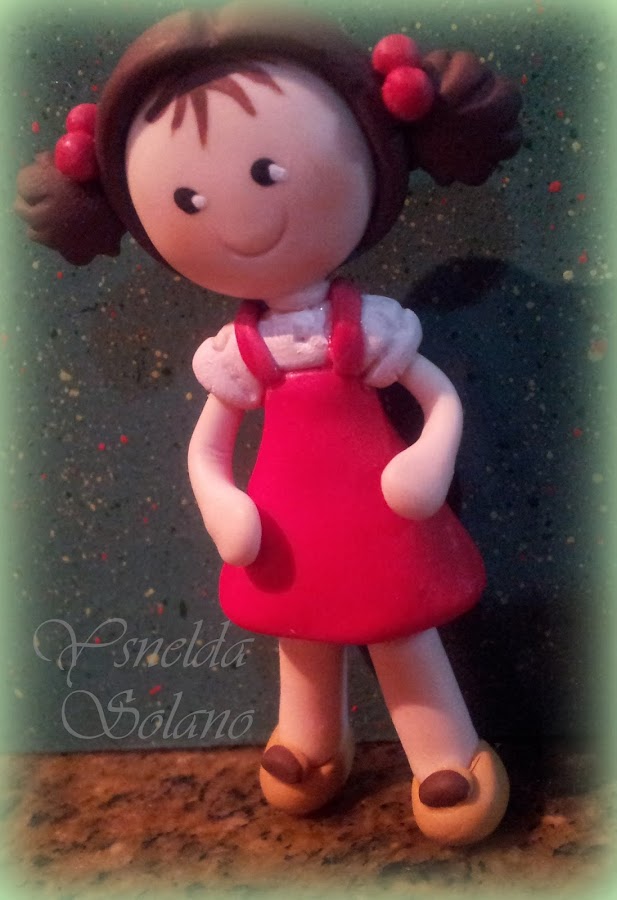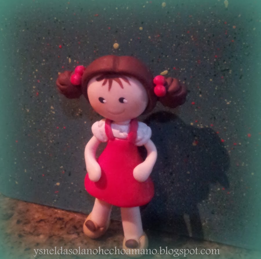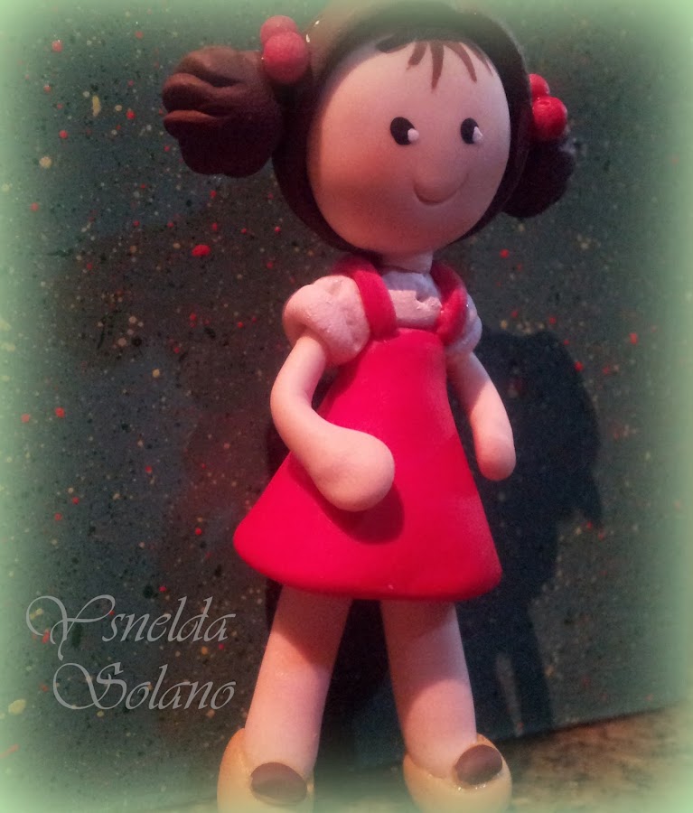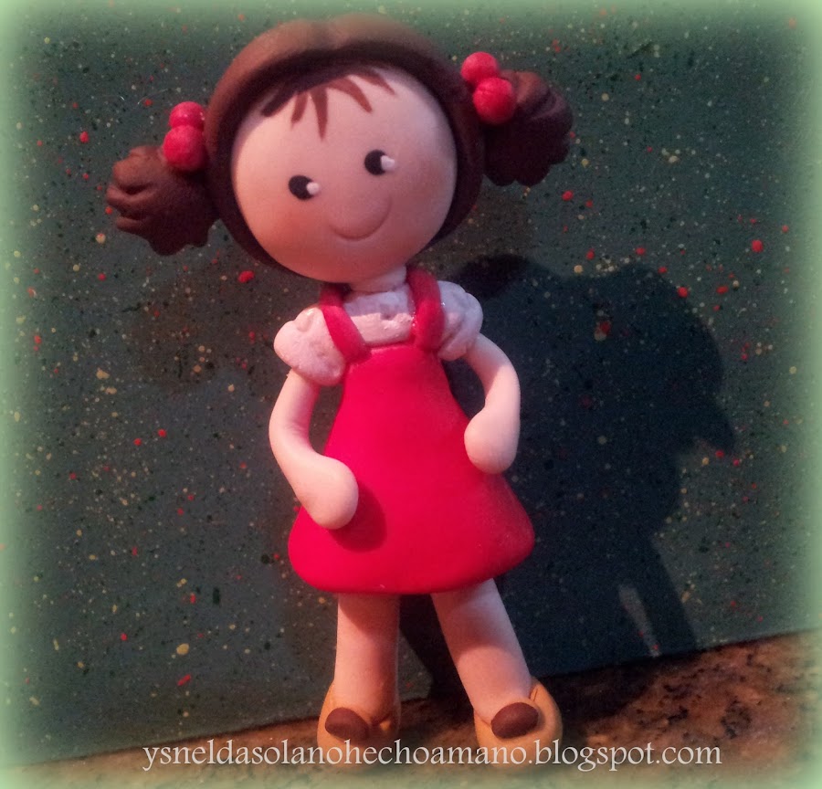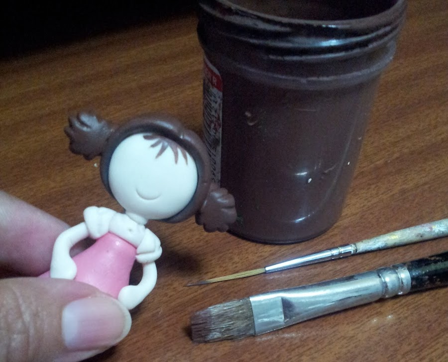8.- Y al unir todas las partes, y maquillar carita. Tenemos a una representación de la pequeña Mei, adaptada a mi forma y material de trabajo. Esta pieza esta opaca, aún no tiene brillo protector, se debe esperar al menos unas horas de secado para colocarlo.