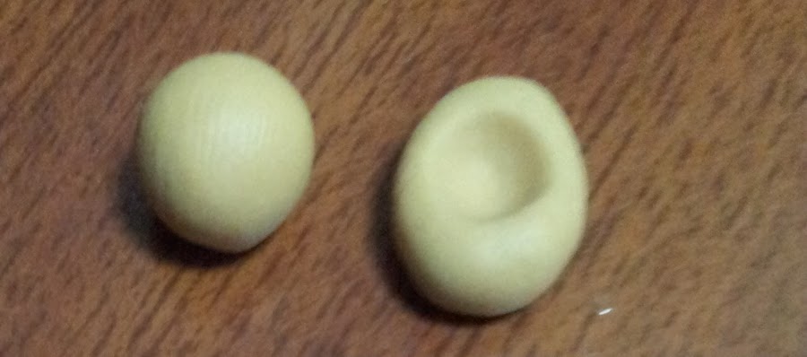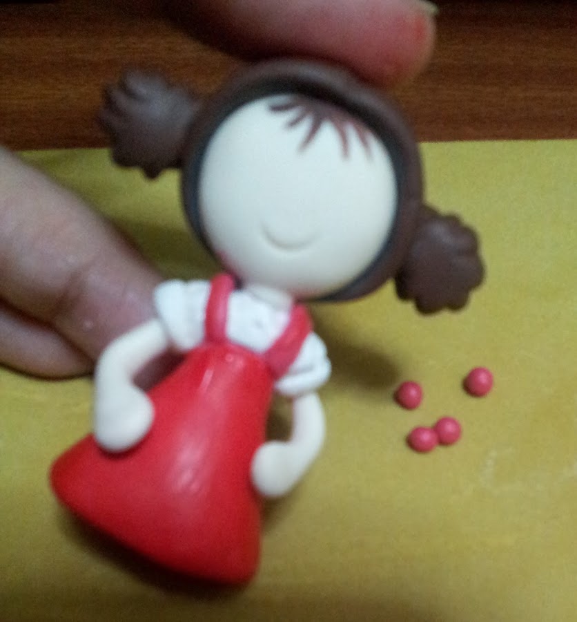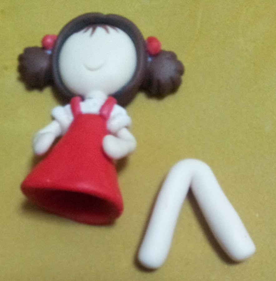 5.-El cabello se realiza a partir de un circulo de masa . Las colitas, dos gotas aplanadas y texturizadas por la orilla.