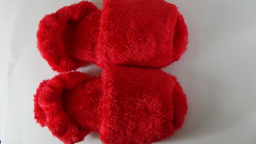 9.- Después de voltear la pantufla cosemos a mano la abertura y ya tenemos la pantufla.