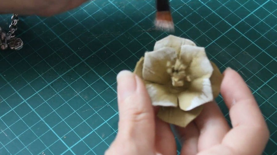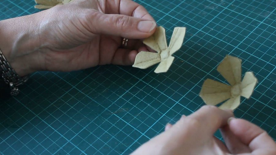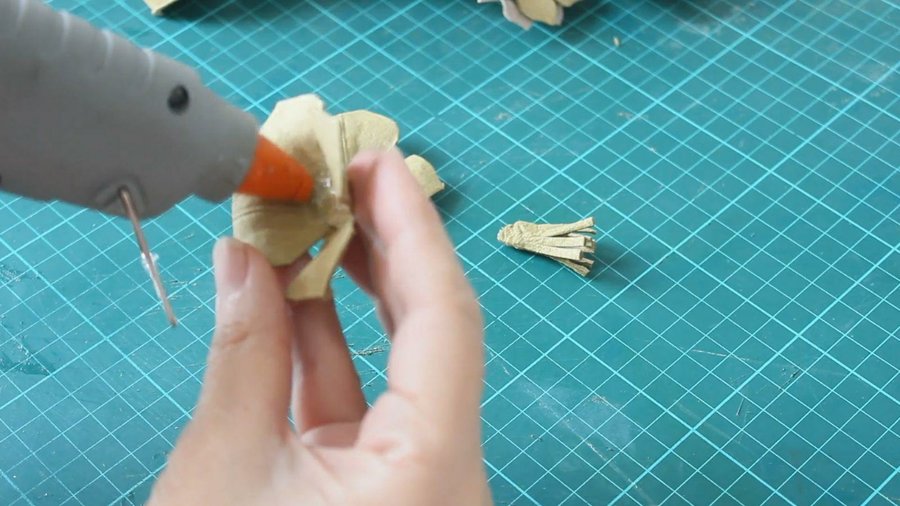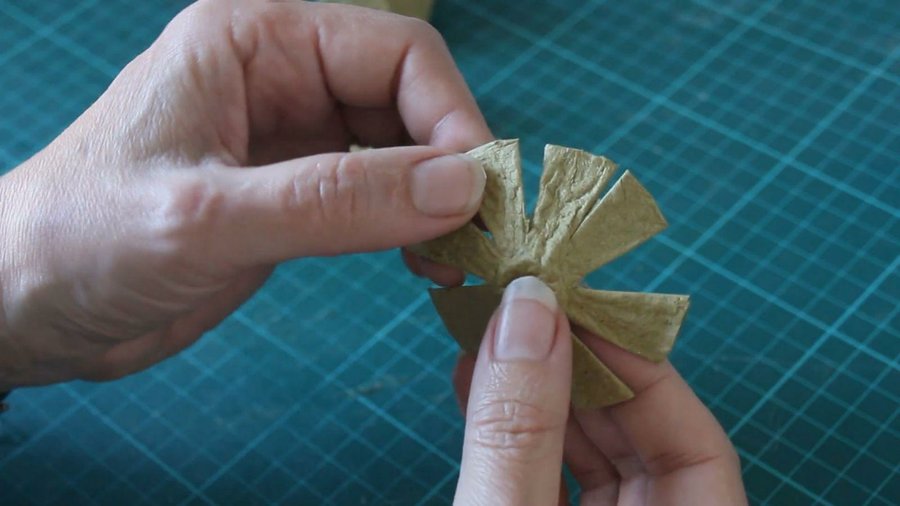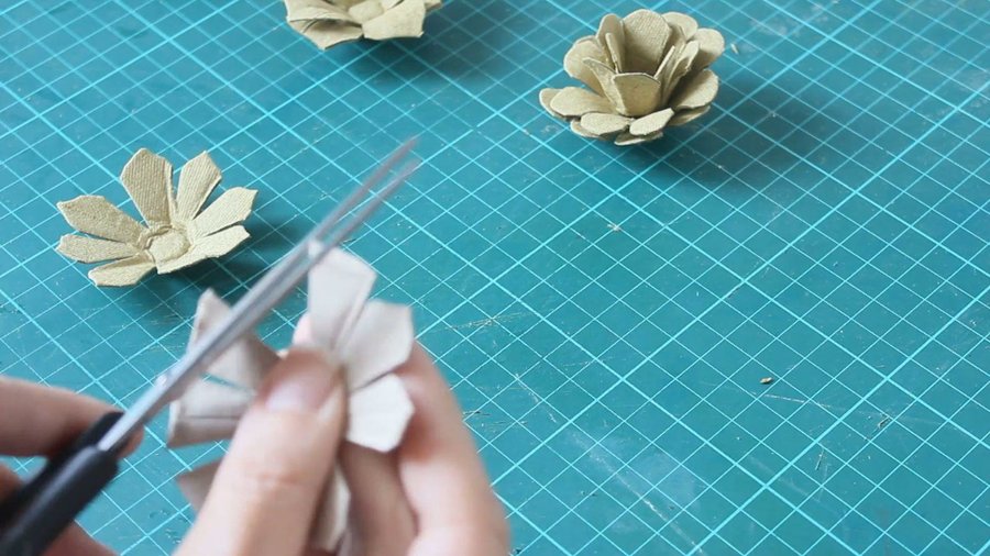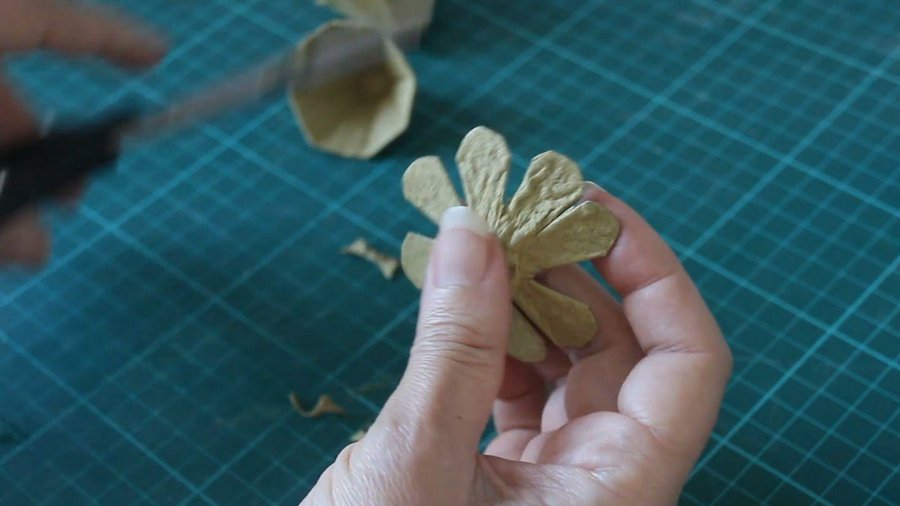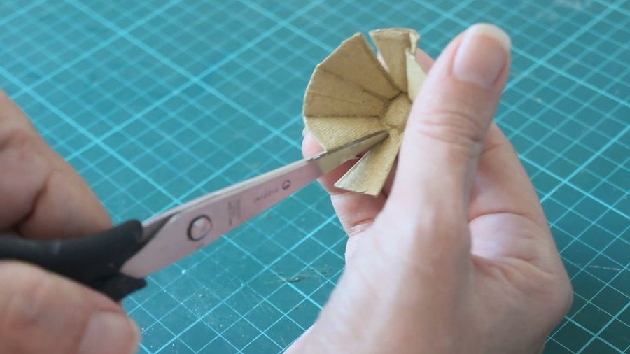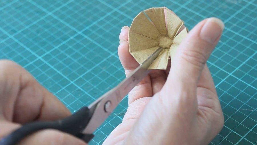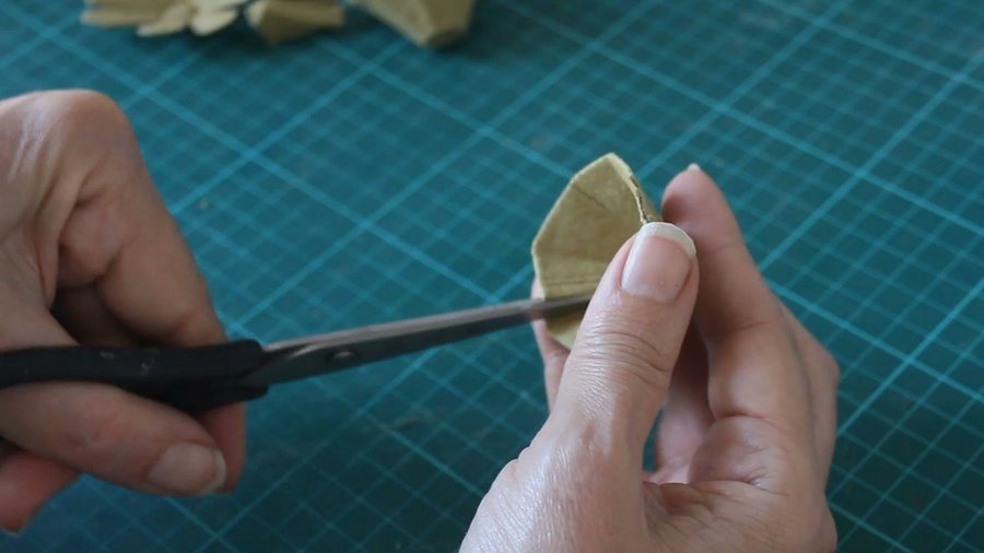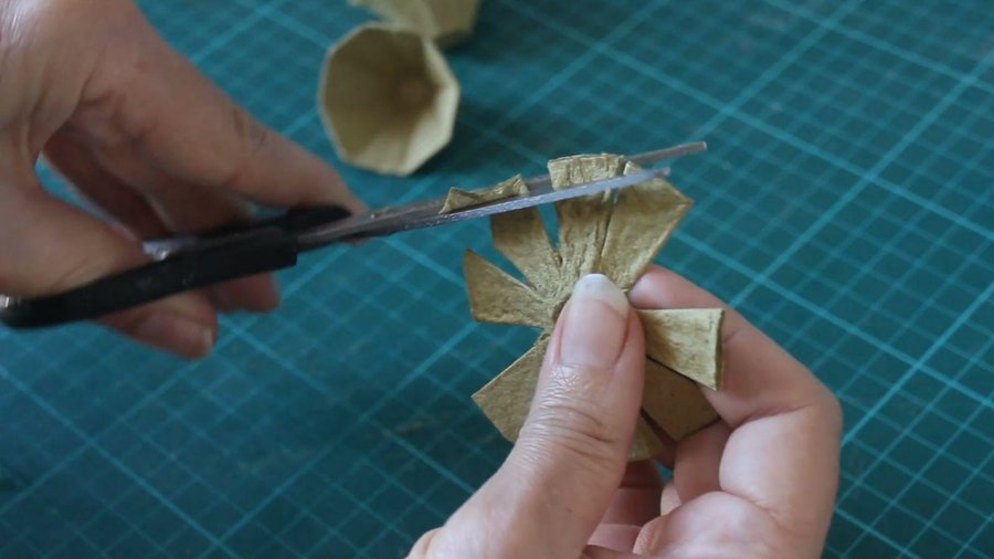 Nos va a quedar de esta manera y por la parte de atrás vamos a hacer cortes con la tijera para redondear los bordes y darles forma de pétalos..