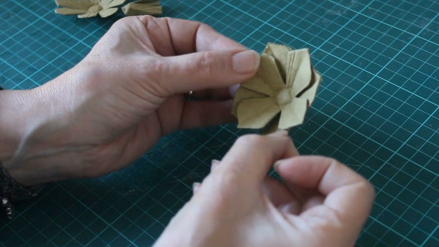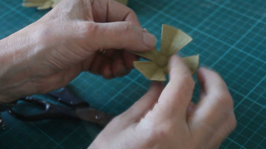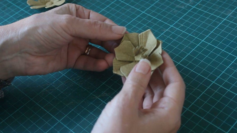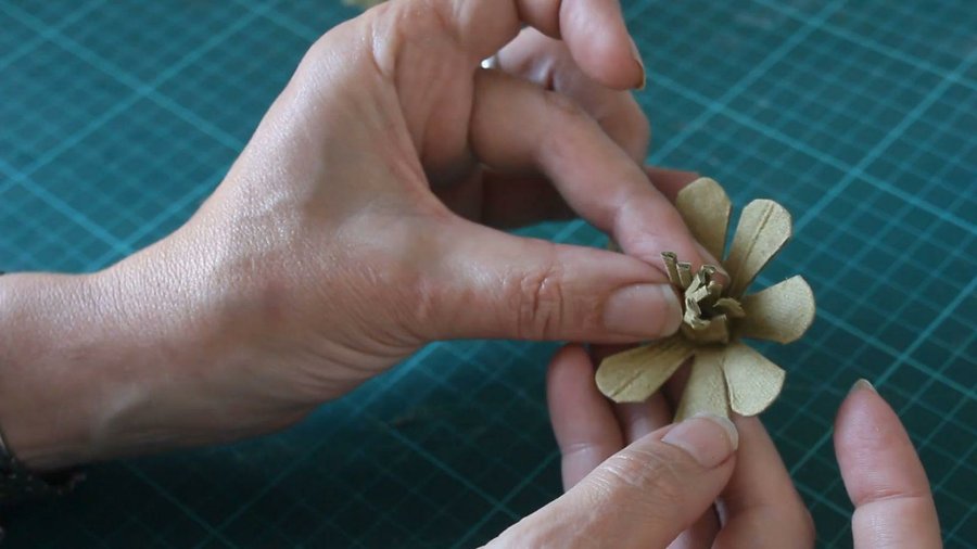 Otra forma diferente podría ser cerrando los pétalos en el centro de esta manera...