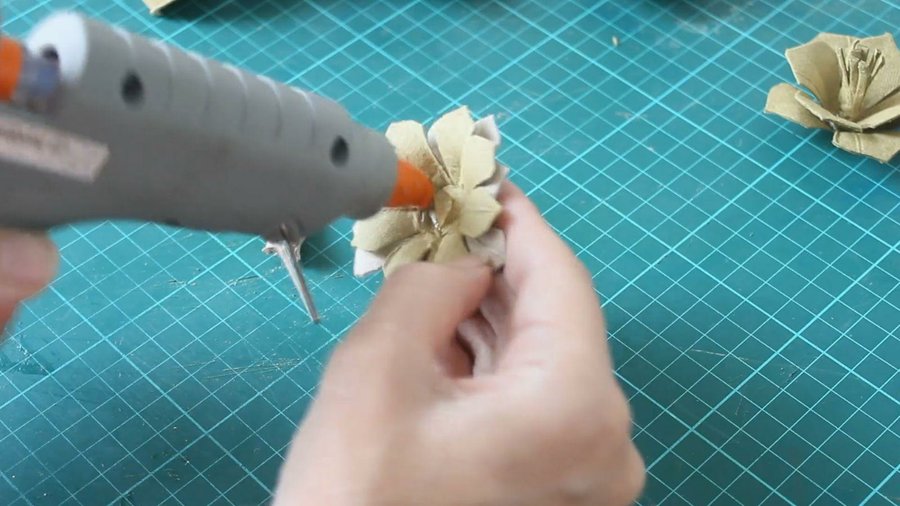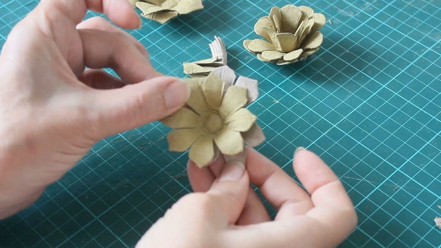 también podemos intercalar diferentes formas y cantidades pétalos de distintos tonos de cartones...
