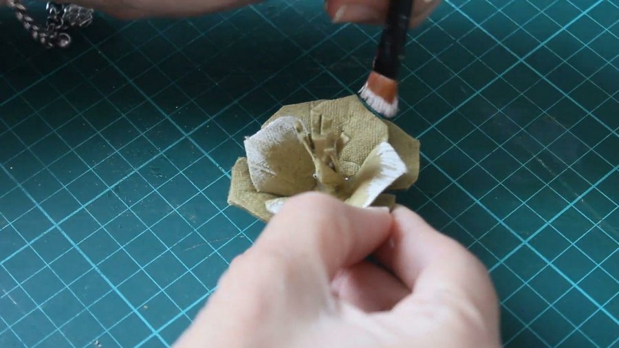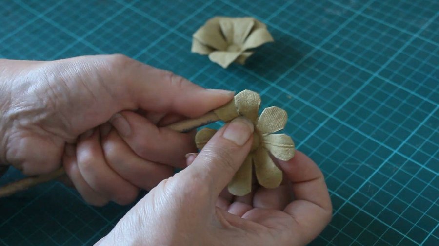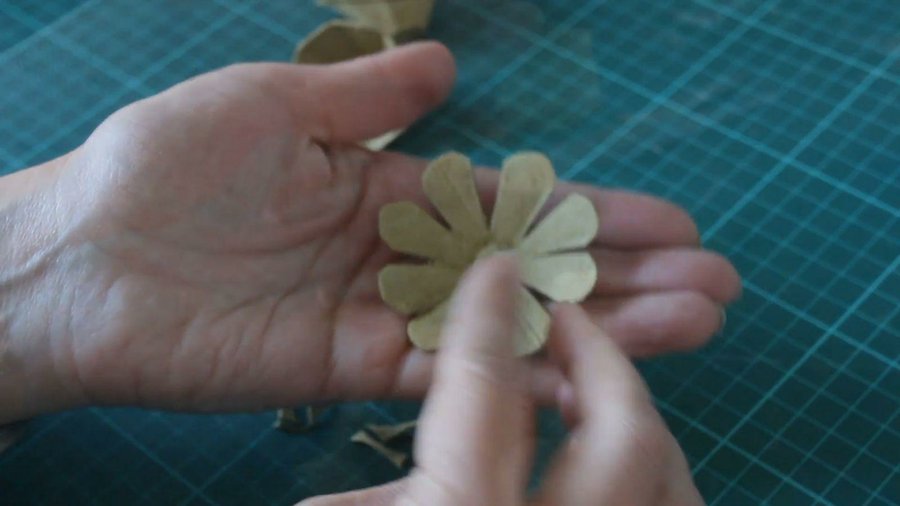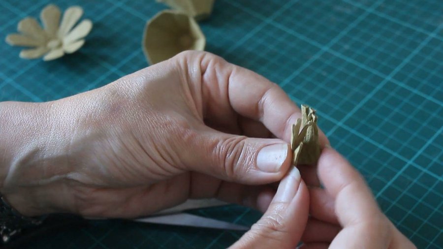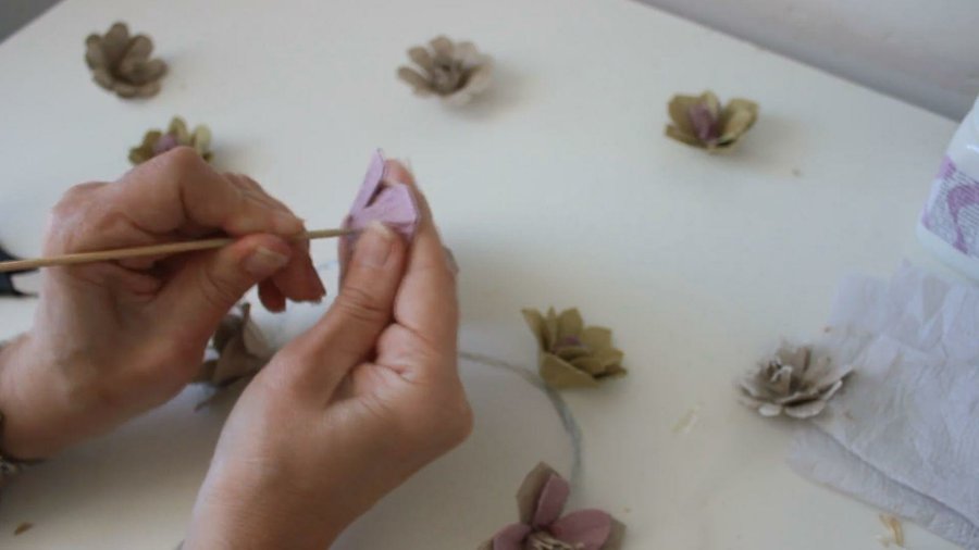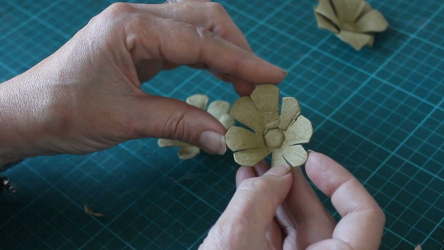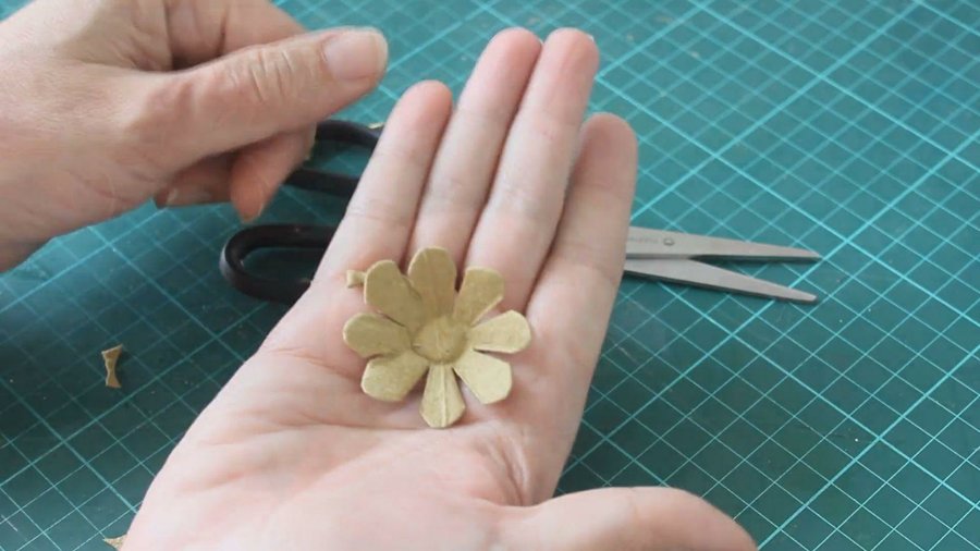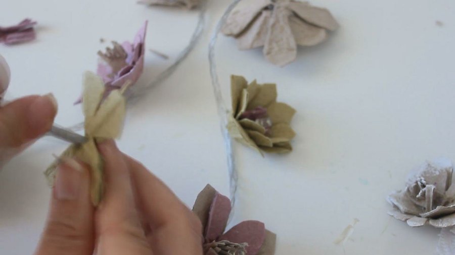 Para hacer los pistilos que van en el centro de cada flor podemos utilizar algún recorte que nos haya sobrado de los bordes del cartón...