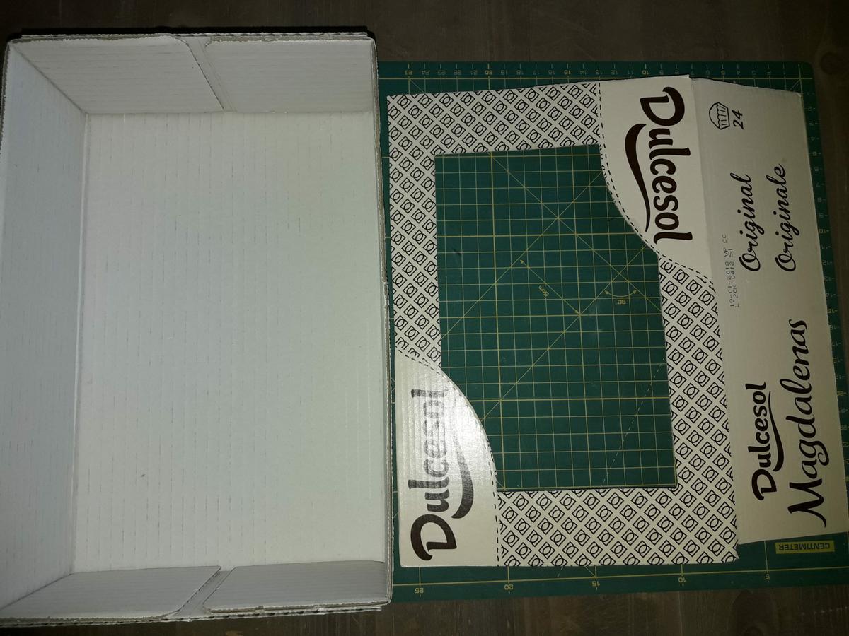 La caja y la tapa vienen por separado. No tocamos nada de la caja y la tapa va a ser transformada para después formar así la puerta del armario.