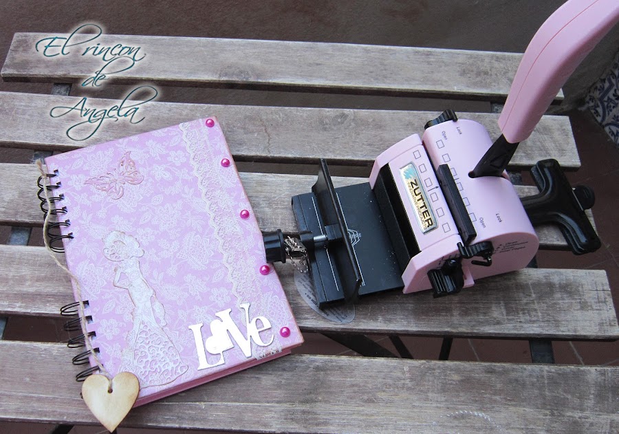Para este trabajo, he usado la encuadernadora Bind it all de Zutter. Es super facil de usar, y muy manejable. Me encanta, y voy a sacarle mucho partido. Para albumes de scrap, libros de firmas, recetarios,agendas, reciclar libretas y hacer encuadernaciones y muchos proyectos mas.