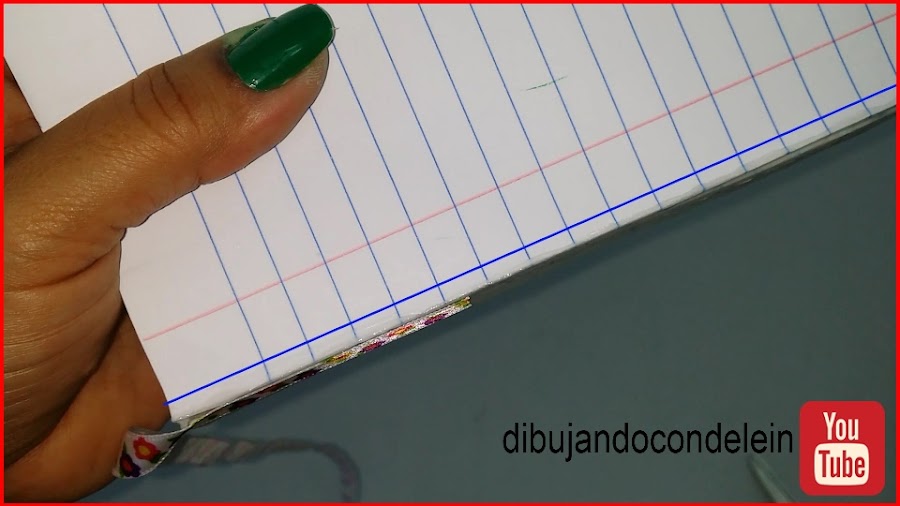 como a nuestras hojas les colocamos una pieza de cartulina en el frente y en la parte posterior en alto de nuestra nueva libreta va a ser un poco mayor al alto de la libreta original, la caratula usada la vamos a tener que colocar abierta sobre la mesa y marcarle las medidas de nuestra nueva libreta tal y como se muestra en la imagen,