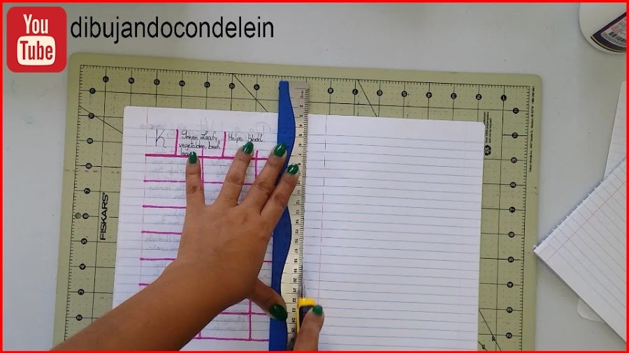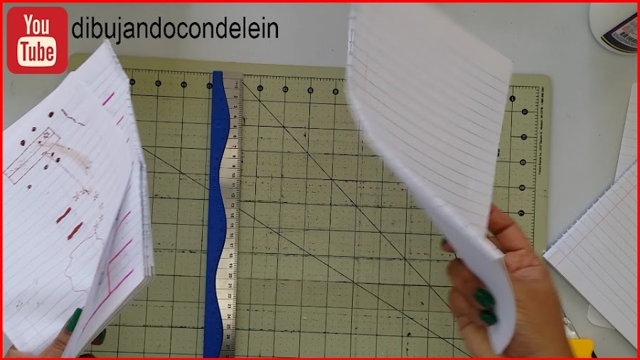 Con la ayuda del exacto o cuchilla cortamos las hojas separando el lado usado del lado que no está usado y lo mismo lo vamos a hacer con todas las libretas que tengamos y vallamos a reciclar.