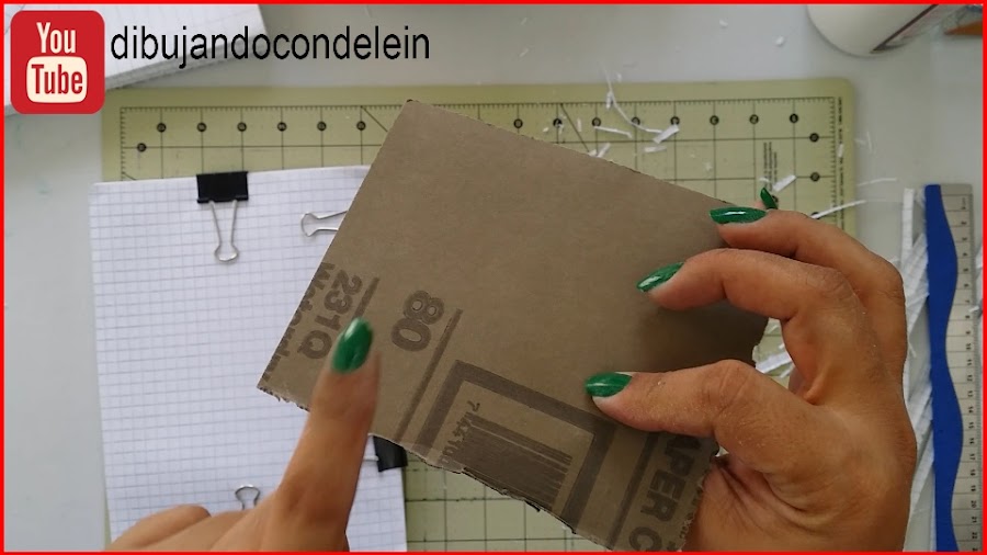 Ahora vamos a medir el largo y ancho del lomo de la libreta que estamos haciendo y vamos a cortar un rectángulo de carton con estas medidas, éste rectángulo lo vamos a recortar de igual manera de las caratulas originales de las libretas que estamos reciclando.