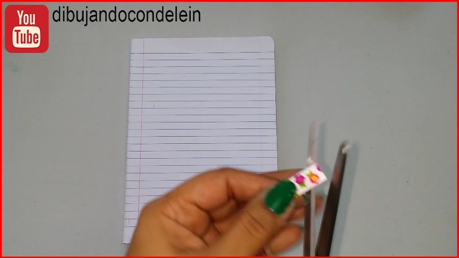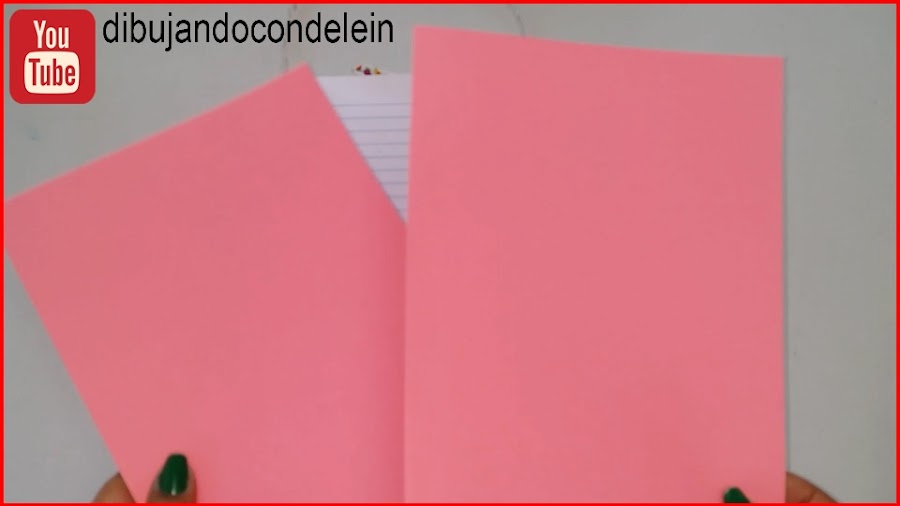 Tomamos el papel de color o la cartulina y la cortamos del mismo alto de las hojas de la libreta y el doble del ancho, vamos a cortar 2 de estas